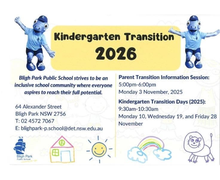 Kindergarten follows the NSW curriculum. Children build early skills in literacy, numeracy, creative arts, health and physical activity, science and technology. Learning through play also supports social, emotional and academic growth.